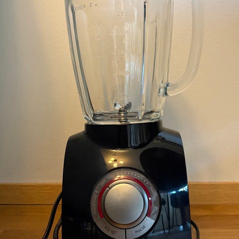 Vähän käytetty ja muuton jälkeen tarpeettomaksi jäänyt Philips ProBlend6 -blenderi. Kykenee murskaamaan jäitä. Ison kannun lisäksi mukana myös kätevä mukaan otettava pullo ja mukikansi.
