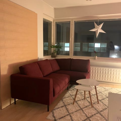 Leveys 4m, toinen divaani noin 212cm ja toinen 152cm