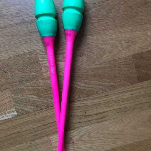Voimistelu tavarat : Pallo Chacott 185mm -50€ melkein uusi pitää vähän pumpata. Keilat Chacott liilat 45cm -15€, ovat isoja ja hyvässä kunnossa. Vihreät keilat 41cm -15€ keskikokoisia, hyvässä kunnossa. Musta ja vähän pinkki vanne 89cm -15€ hyvässä kunnossa ja vanne suoja 3€.