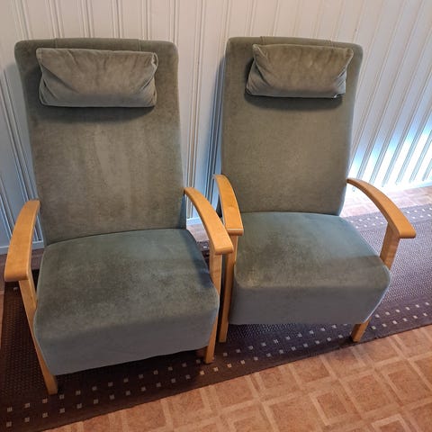 Myydään nojatuolit. Mahdollista ostaa kaikki 4 tai kaksi harmaata tai kaksi pirtsakkaa vaaleaa nojatuolia, 130 €/kpl.