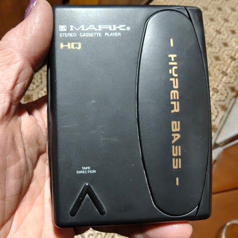Ostan kasettisoittimen kannettavan, jossa erillinen mikrofoni.