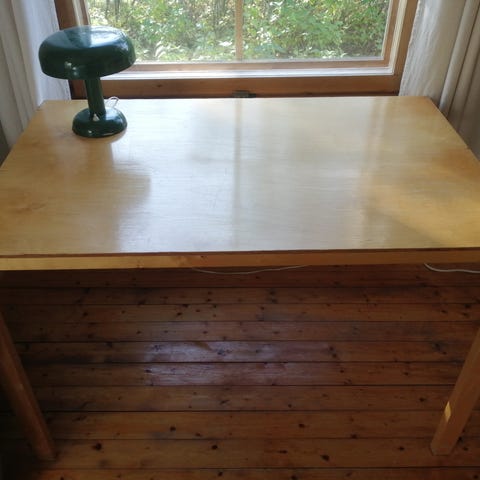 Artekin koko koivu työpöytä. Tämä pöytä on tehty tilaustyönä artekilta. Pöydässä etulevy. Pituus on 180cm ja leveys 88cm ja korkeus on 71cm. Pöydässä on artek L-jalat.