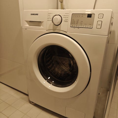 Siemens edestä täytettävä pesukone. Valkoinen väri ja pyöreä etuluukku. Varustettu digitaalisen näytön ja ohjelmavalitsimen ohjauksella. Soveltuu kodin pyykinpesuun. Nopea nouto