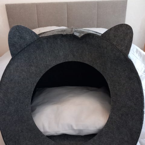 Kissa ei jakanut omistajan visiota kauniista makrameepedistä, joten käyttämättä jäänyt! Voi ripustaa esim. seinää vasten tai ikkunalle tipujen tiirailua varten.
