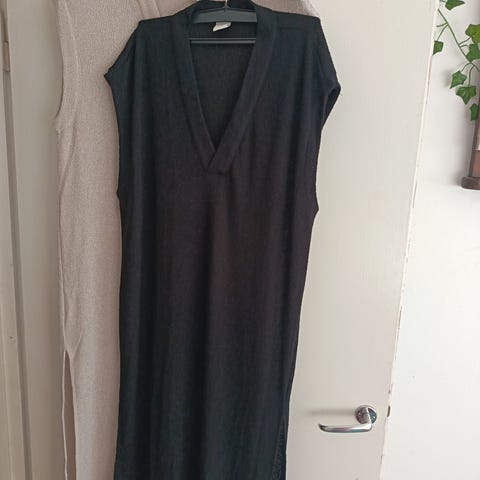 Kuvanmukainen neulemekko. Ostettu Anttilasta vuosia sitten ja jäänyt roikkumaan kaappiin. Helman mitta jää vähän polven yläpuolelle.