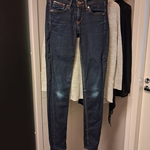 Käytetyt,siistikuntoinen farkut joustavaa puuvilla-lyosell-elastaania.Hieman kulumaa haaran saumassa. Malli "cigarette".