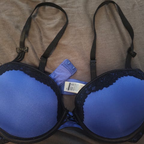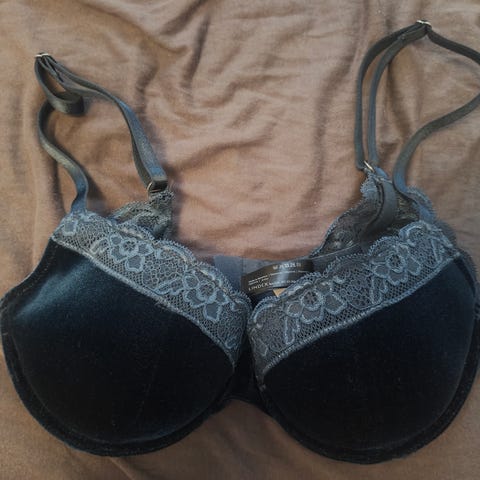 Selling beautiful black lace Lindex bras in size 70C. Only tried on, but unfortunately too small for me — otherwise brand new. Cute decorative buttons on the front. I believe these could also fit a B cup comfortably. Very elegant!