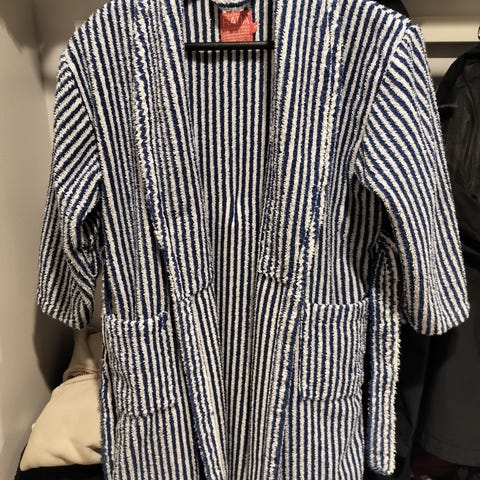 Peuhu hupullinen kylpytakki pehmeää kangasta. Täysin ehjä. Kissatalous.