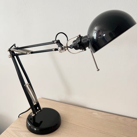 Musta pöytälamppu. Korkeus 44 cm. Siisti kunto. Vain nouto.