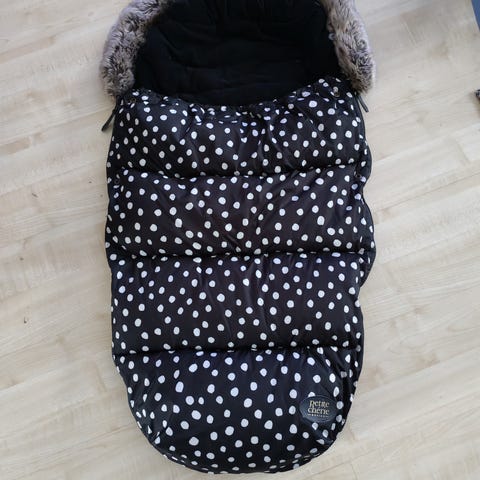 Erittäin paksu ja lämmin vauvan toppapussi. Väri hempeän vaaleanpunainen. Sisäpuolella aukot turvavöille, joten sopii suurimpaan osaan vaunuista ja turvaistuimista. Irrotettava karvareunus (kumilenksut joilla kiinnittyy pussin nappeihin ovat jo hapristuneet, pysyy kuitenkin hyvin paikallaan). Muuten erittäin hyväkuntoinen ja siisti, vähälle käytölle jäänyt.