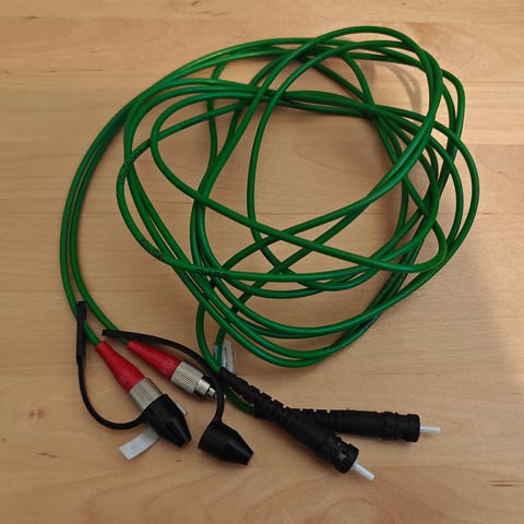 Ethernet kuitukaapeli FC-FC liittimillä. Kaapelin pituus 2m. Testausta ei ole pystynyt tekemään, kun ei ole laitteistoa. Kaapelit omissa pakkauksissaan. Näitä kaapeleita löytyy kaksi pakettia ja ilmoitettu hinta on yhdelle paketille. Yhdessä paketissa tulee siis tuollainen tuplajohto.