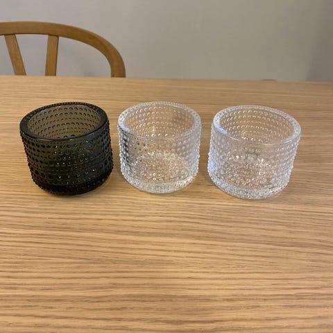 Kaksi kestehelmi tuikkukuppia. Hp yht 20e. Nouto Heikinlaaksosta tai postitus.