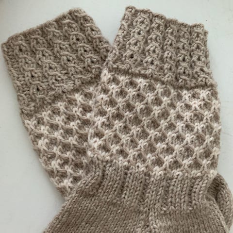 Villasukat beige - siniraita koko 38