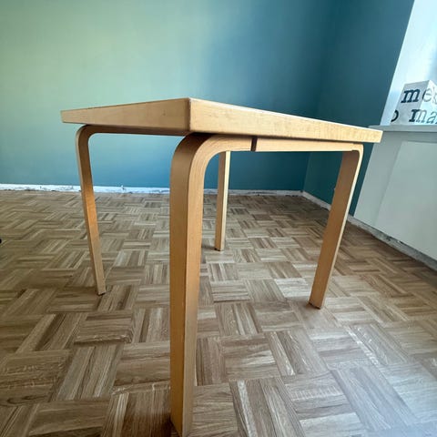 Erittäin siisti Artek 81b pöytä, jossa valkoinen laminaattipinta ja vaaleat koivujalat.