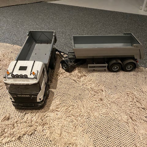 Kuvien yhdistelmä jouten, takaovet tulostettu molempiin ja nupin pressusta yksi lenkki revennyt. Muuten eheä kampe. Kärry pikkupyörillä.