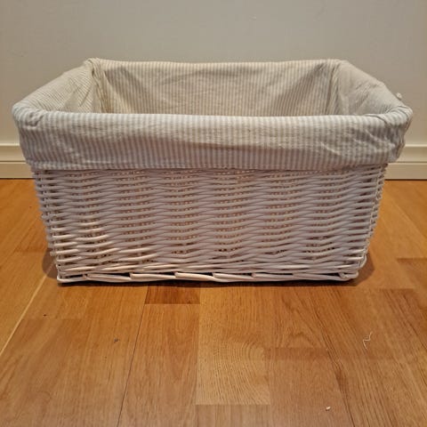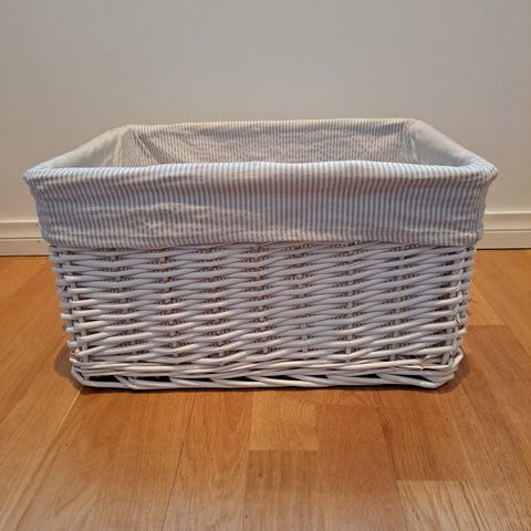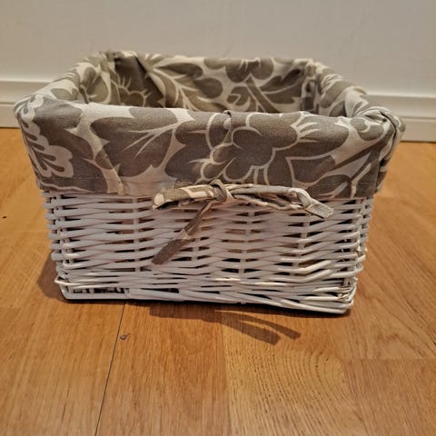 House merkkinen kori, puuvillaa. Olen itse säilönyt siinä lankoja ja vilttejä.