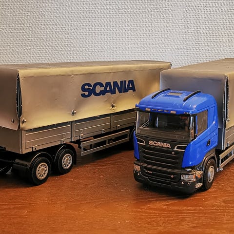 Emek Scania koukkuauto + lava täynnä rompetta