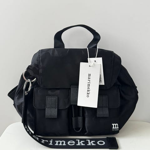 Myydään käyttämätön marimekko everything L unikko backpack ja Musta Logokassi.