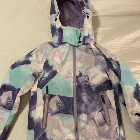 Annetaan lasten Five Seasons laskettelutakki, koko 134/140. Kulumaa hihansuissa ja kauluksessa, tummentumaa valkoisissa kohdissa. Takissa on lumipussi, hihatasku lipulle ja hihansuissa trikoohihat. Vanha, mutta ajaa vielä asiansa esim. rönttätakkina ulkohommissa.