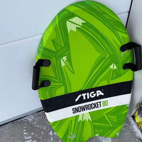 Stiga Snowrocket 80. Pohjan takaosassa pieni kolo mutta liukuu silti hyvin