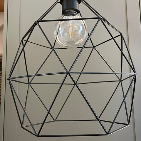 Musta kattolamppu. Halkaisija 35 cm korkeus 40 cm. Materiaali maalattua terästä.