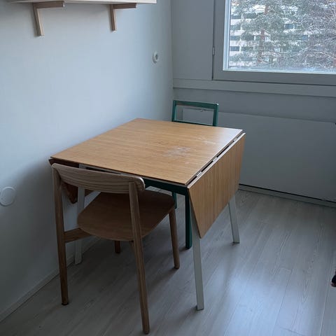 ANNETAAN Ikea PS 2012-ruokapöytä. Pöytä on hyvässä kunnossa, mitat: 80cm x 74cm (pöydän sivut alhaalla) täysmitassa 138cm. Pöytä noudettavissa Ullanlinnasta, nopeat noudot etusijalla toimitus ei mahdollista.