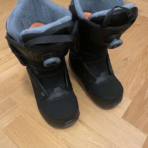 Flow Onyx Coiler lumilautakengät Boa-kiristyksellä. Naisten malli, mutta ollut meillä lapsella käytössä. Pientä siteistä tullutta kulumaa jalkaterän päällä, mutta muuten oikein hyvässä kunnossa.
