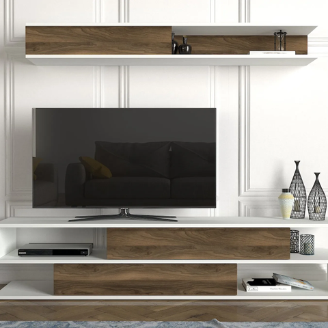 Chic Home Matlleena TV-taso 180 cm + mediahylly 150 cm, valkoinen/ruskea