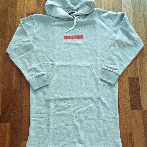 Myydään hyvä kuntoinen Gantin hupparimekko koko L. Pari kertaa käytetty, kerran pesty. Kainalo-kainalo 57 cm. Hinta 25€