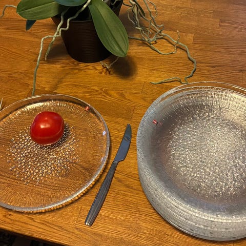 Lautanen 24.5 leveä, Oiva Toikan lasit. Nämä uudenveroiset keräilyesineet. Erikseen lautanen ja lasit 30€/30€.