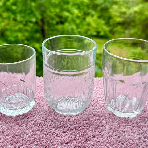 IKEA juomalasit kirkkaasta lasista. Monikäyttöiset lasit sopivat erilaisiin juomiin ja arkikäyttöön keittiössä tai ruokapöydässä.