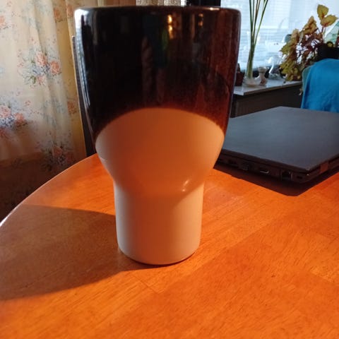 Kermansaven valmistama maljakko, jossa on kaunis kukkakoriste ja suuta kiertää kultaus. Maljakko on on hyväkuntoinen käytetty. Vaasin korkeus on 20 cm ja suuaukkon halkaisija 10 cm. Maljakon voi noutaa Länsi-Pakilasta, voin myös postittaa.
