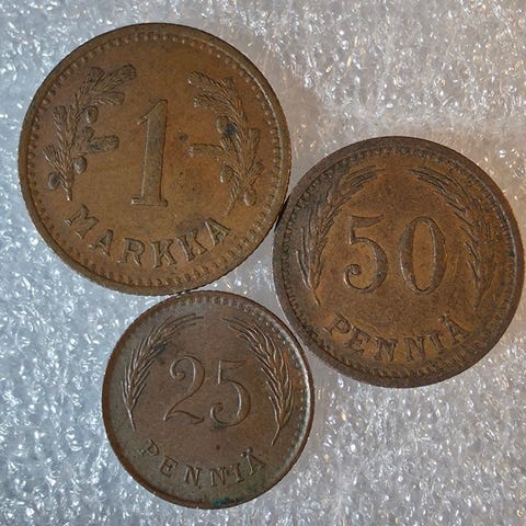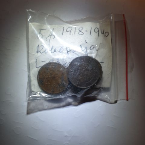 5 ja 10 pennit reikä keskellä, 5 kpl,