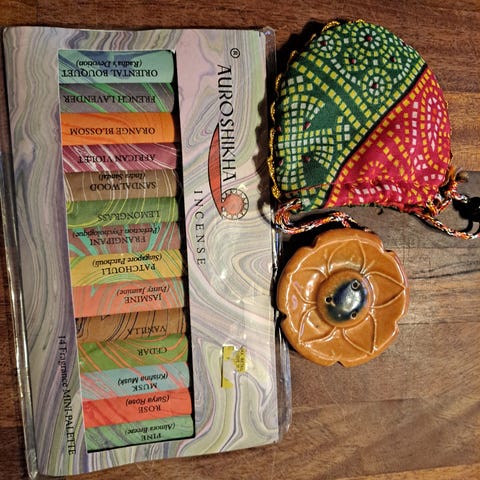 Intialaiset suitsuketikut, santelipuu ja laventeli