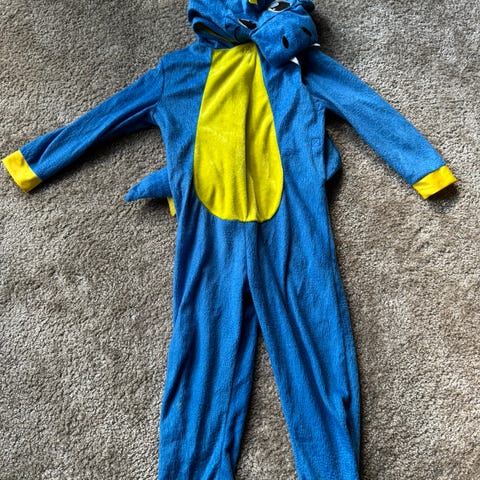 Hurja hieno dinosaurus-asu! Alkuperäisessä pakkauksessa haalari, päähine ja häntä. Tarrakiinnitys, siistit tarrat. Uutena ostettu ja käytetty ehkä kolme kertaa.