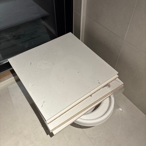 Uusia, muovissa olevia ylimääräiseksi jääneitä hyllylevyjä