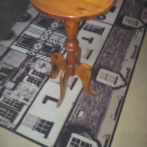 Myydään siisti ja tukeva puinen kukkapöytä, jossa on kaksi tasoa. Klassinen muotoilu, sorvatut jalat ja tukeva nelijalkainen jalusta. Sopii erinomaisesti kukkapöydäksi, sivupöydäksi tai koriste-esineiden esillepanoon.