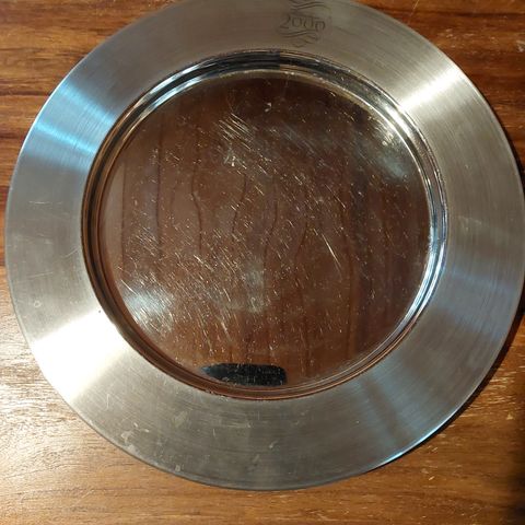Lahjaksi saatu, mutta käyttämättä jäänyt teräslautanen 32cm halkaisijalla.
