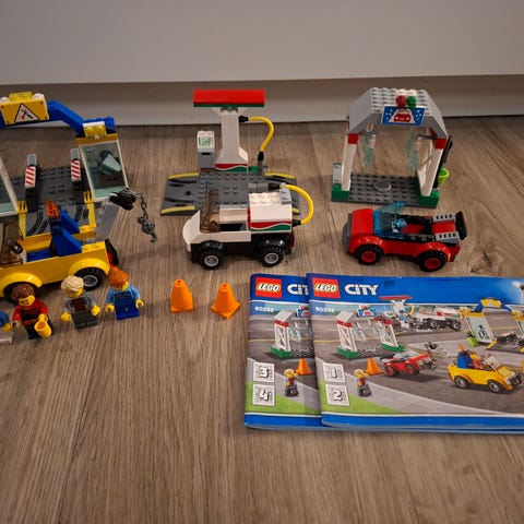 LEGO City huoltoasema rakennussarja sisältää huoltoaseman , ajoneuvot ja minihahmot.