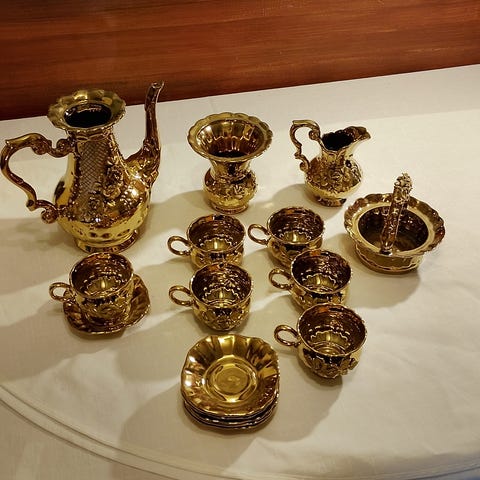 Kultakoristeinen kahviastiasto