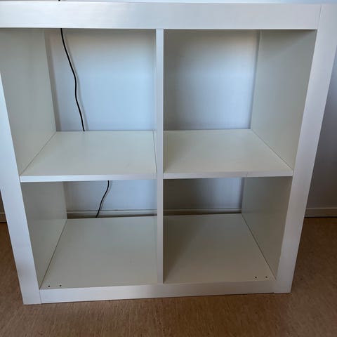 Kohtalaisessa kunnossa oleva mustaruskea Ikea Kallax 2x4. Lähinnä kosmeettista jälkeä. Edestä ja toiselta sivulta siisti. Toisella sivulla runsaasti naarmuja, päällä myös joitain jälkiä. Listoja irronnut takaa. Sopii esim. varastoon, vaatehuoneeseen yms.