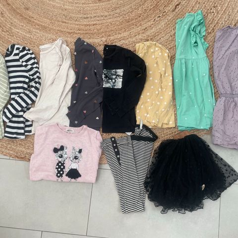 Keäsinen vaatepaketti. Settiin kuuluu erilaisia mekkoja ja shortseja.
