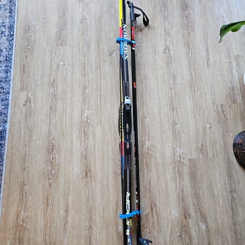 Myydään ehjät ja siistit Salomon Equipe Junior sukset. Suksien pituus 156cm. Sidetyyppi SNS Pilot