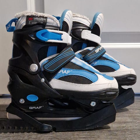 Annetaan kuvassa näkyvät luistimet. Kuluneet ja terissä ruoste läikkiä.