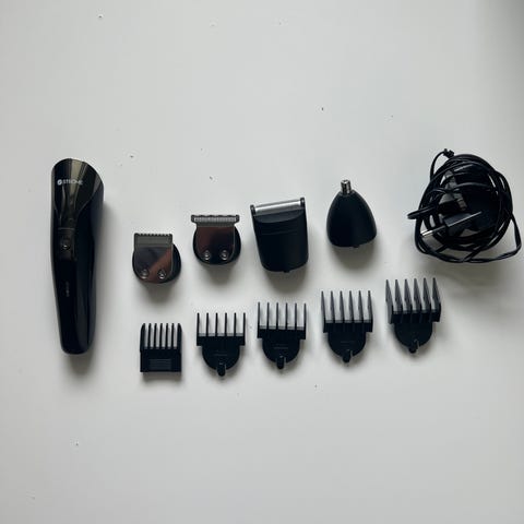 Miesten hiustenleikkuri ja trimmeri setti. Setti on uutta vastaava.
