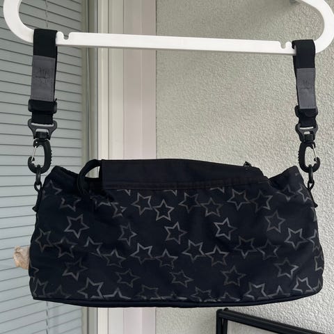 Myydään laukku rattaisiin tai vaunuihin. Sivuilla kiristettävä tarranauhat. Sisustaa ei ole pesty käytön jälkeen.