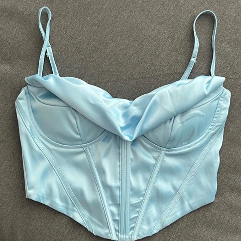 Korsetti toppi. Ei toppauksia, mutta kaarituki löytyy.