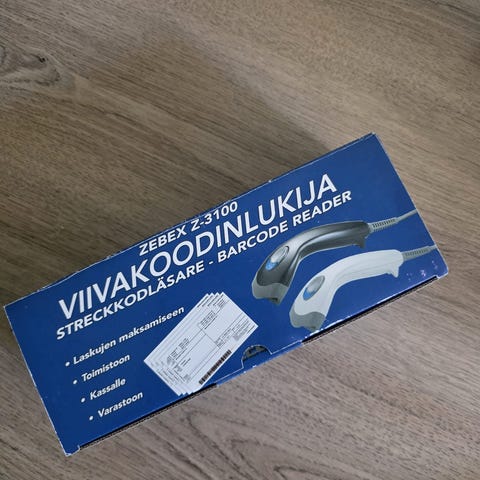 Kädessä pidettävä, USB-liitännäinen viivakoodinlukija (laserskanneri)