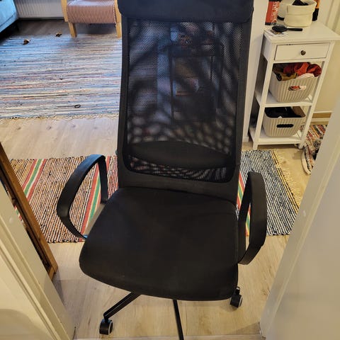 Pikkuvikainen Markus-työtuoli, jonka kaasusylinteri vuotaa pikkuisen. Eli istuin-osa palautuu itsestään ylä-asentoon ajan kuluessa. Lisäksi, istuinosa kulunut etuosasta hieman puhki. Nouto Jokelasta. Maksu käteisellä.