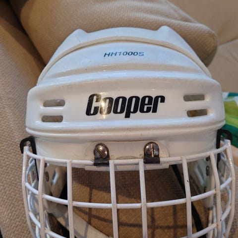 Myynnissä on kuvissa oleva CCM Vector kypärä ristikolla.